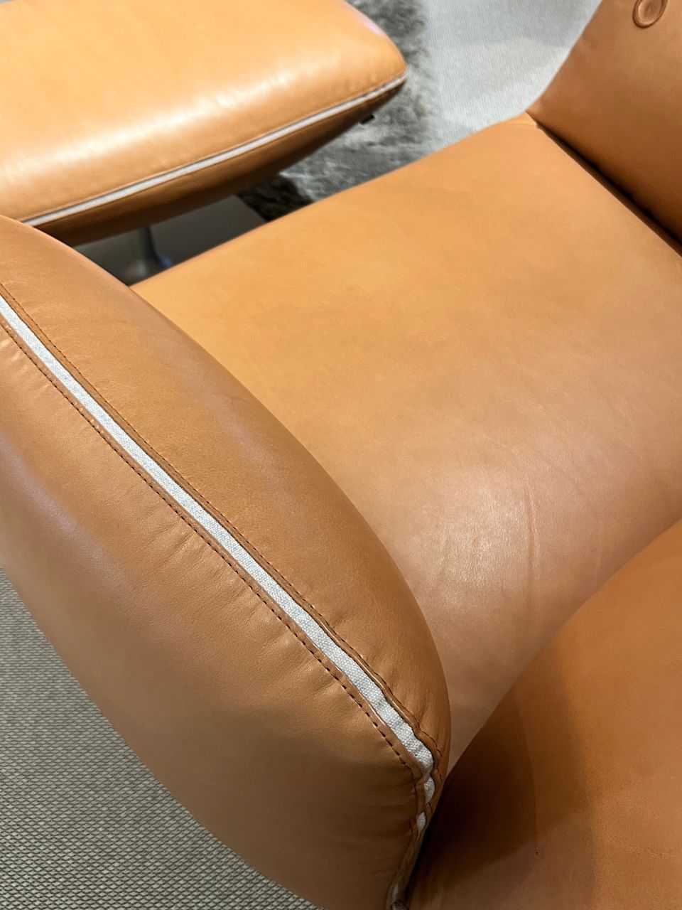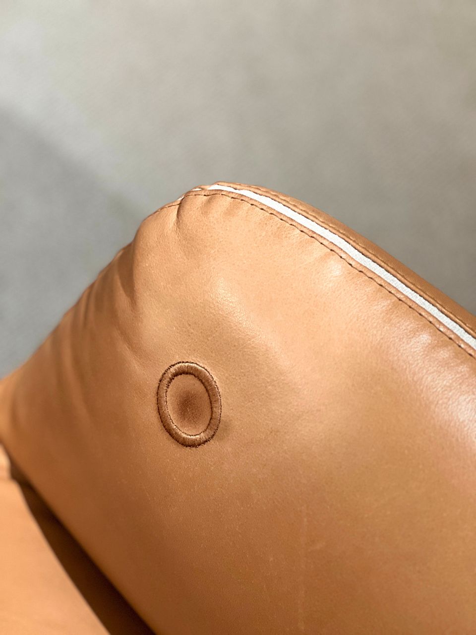 Bezug Leder 922, Fb. cognac und Nahtband Stoff, Fb. kitt 5095